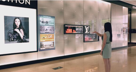 互動(dòng)櫥窗設(shè)備可將圖像投射到商戶臨街玻璃櫥窗的普通玻璃上(所有互動(dòng)櫥窗設(shè)備都放置在店內(nèi),畫(huà)面尺寸不限),顧客在店外隔著玻璃點(diǎn)擊圖像畫(huà)面,在店內(nèi)的互動(dòng)櫥窗設(shè)備可感應(yīng)到 ……